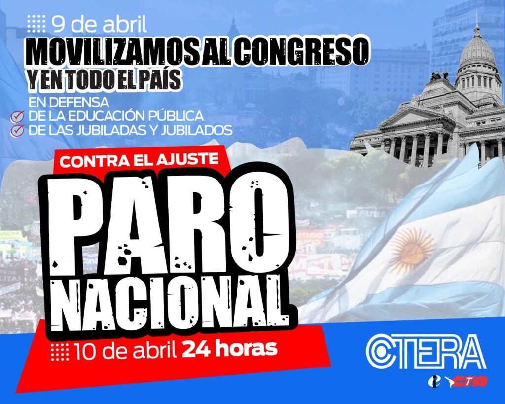 Y el 10 de abril se concretará un Paro Nacional Docente por 24 horas y sin asistencia a los lugares de trabajo en demanda de:
